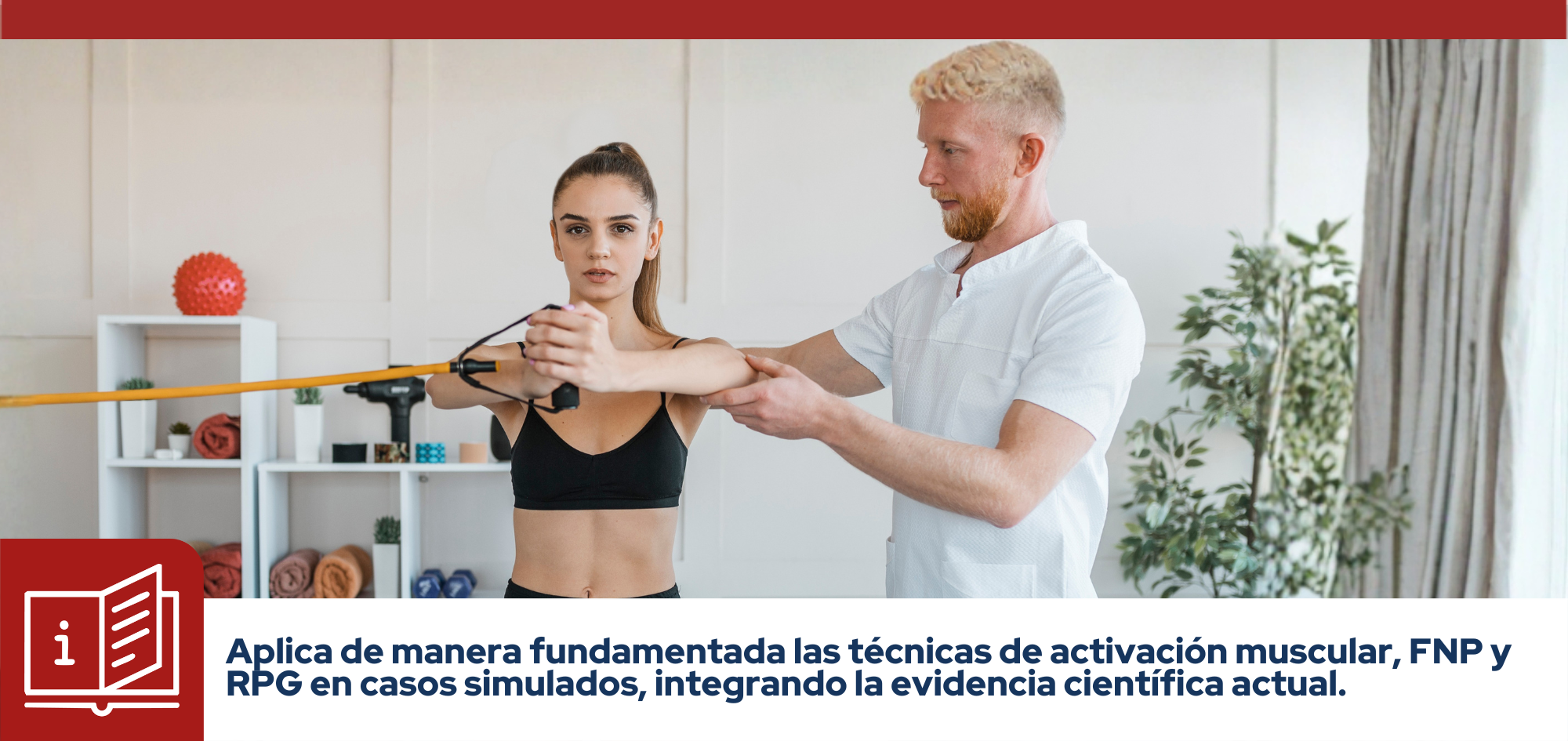 El taller tiene como objetivo fortalecer las habilidades prácticas en métodos de activación muscular, facilitación neuromuscular propioceptiva (FNP) y reeducación postural global (RPG), herramientas clave en el abordaje fisioterapéutico contemporáneo.